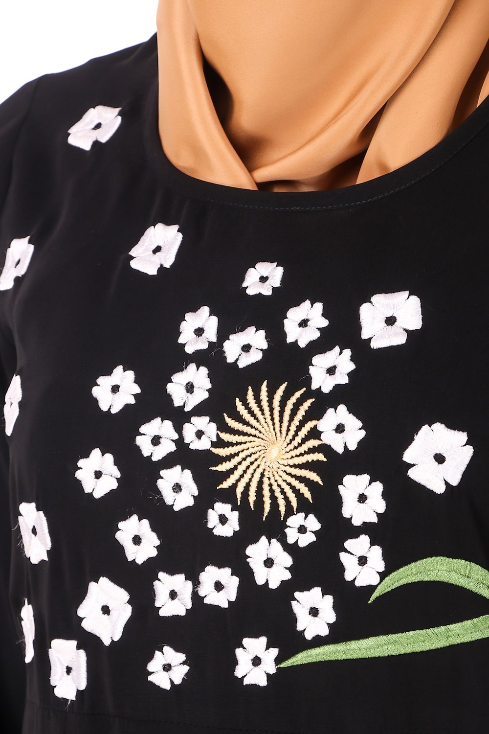 - Abstract floral hand embroidery in front