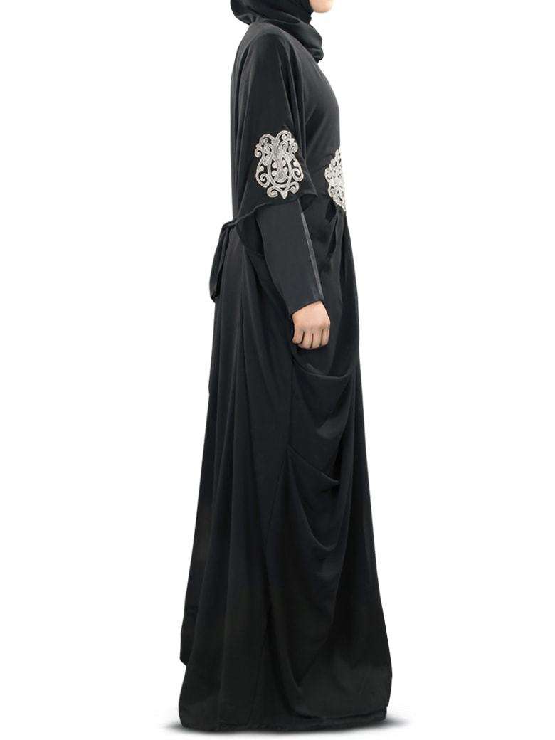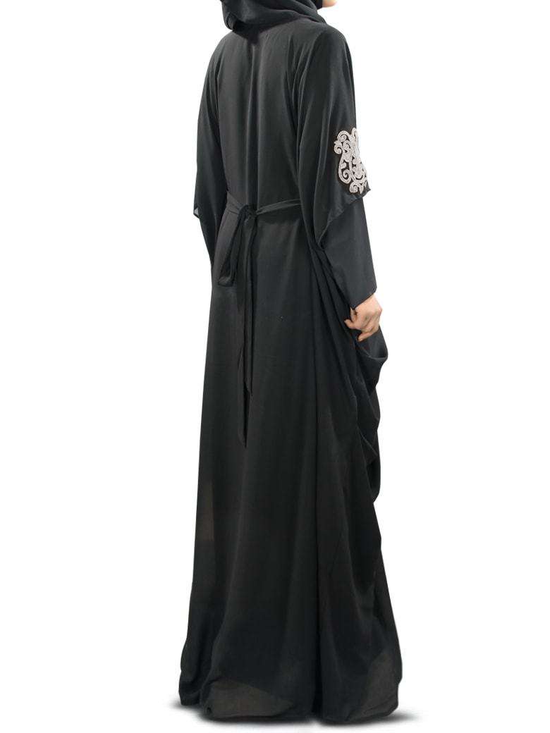 Amara Silver Embroidered Black Georgette Kaftan (Without Inner)