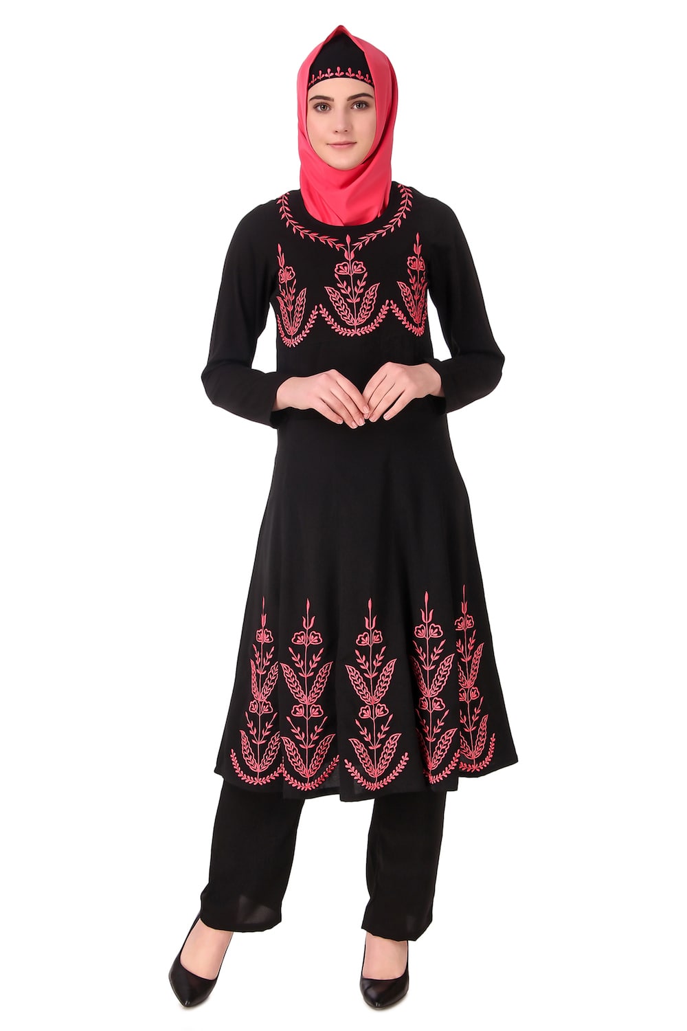 - Contrast beautiful embroidery motifs on bodice and at bottom on each panel.