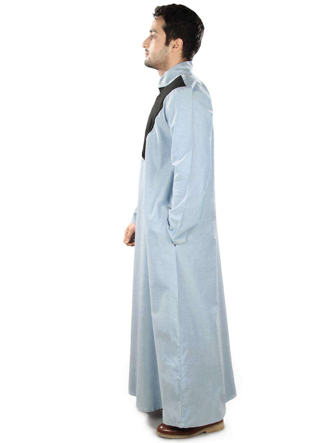 Cotton Blue Galabiyya tailored with the finest chambray fabric. Move freely in this formal wear