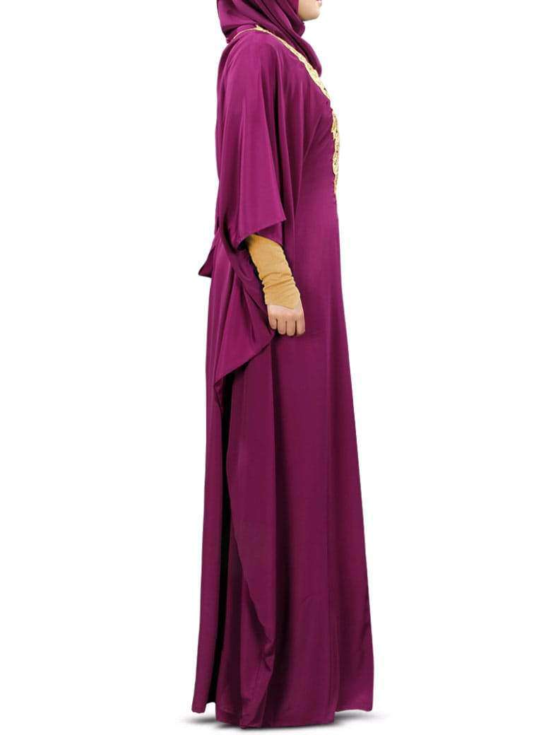 A very Beautiful Kaftan with pretty gold embroidery at neckline, this dress expresses your style with modesty, suitable for formal and occasion wear
