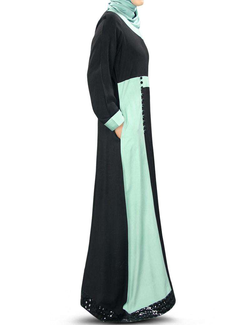 Islamic Abaya for a formal occasion or casual style, this dress has been tailored using soft rayon fabric and stunning sequin lace at bottom, a perfect gift for a young vintage loving Muslimah
