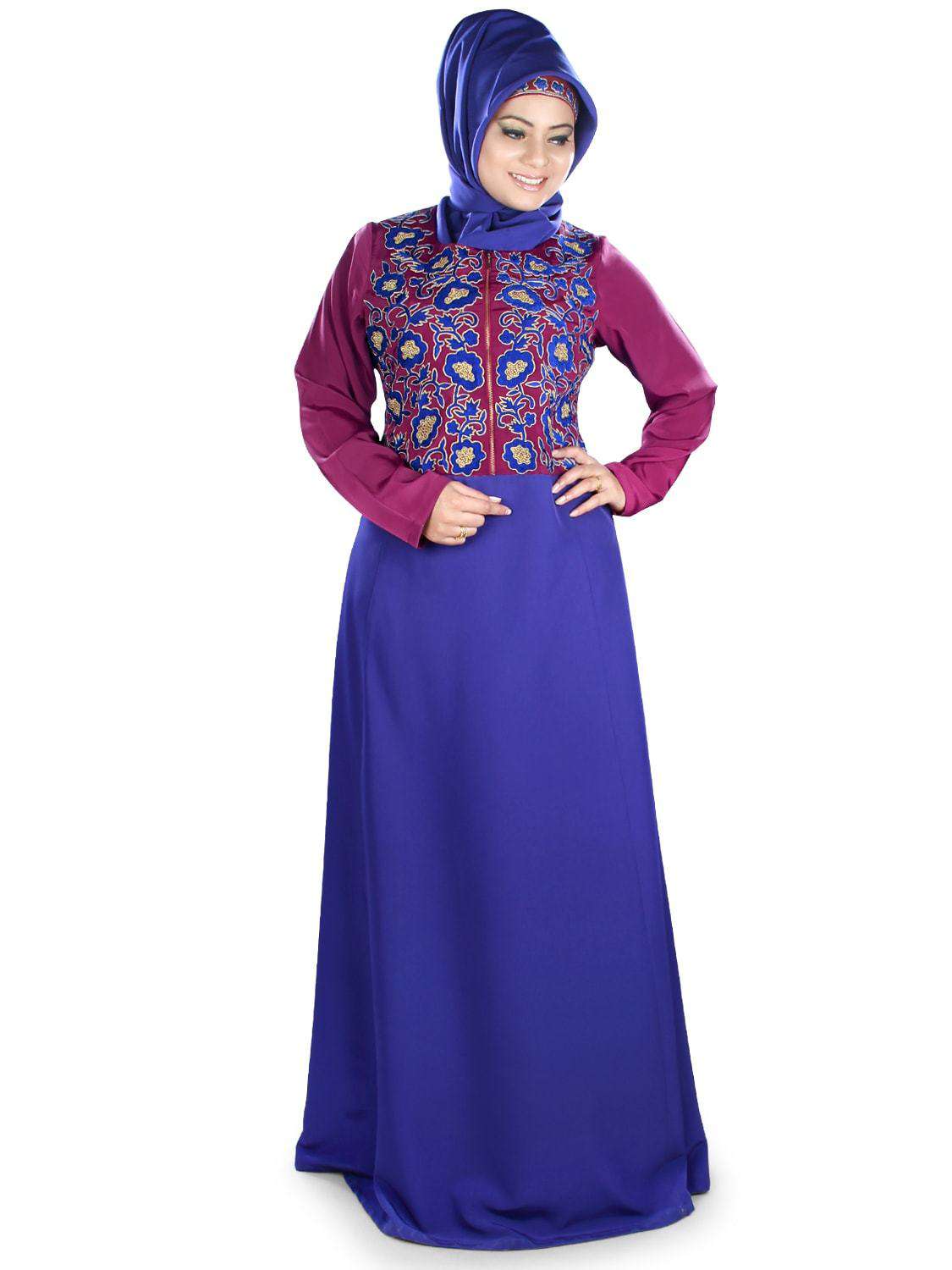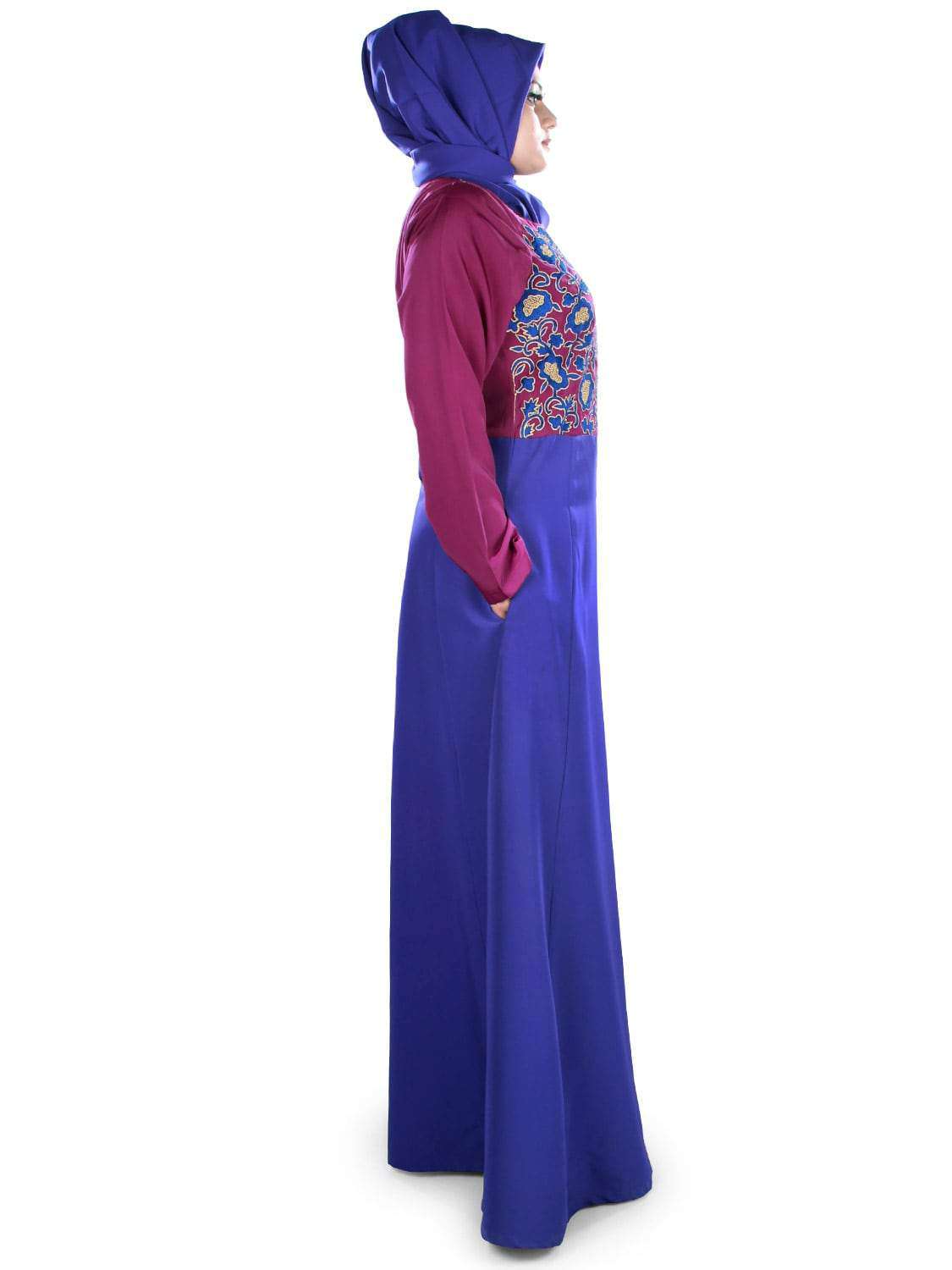 Most beautiful, easy to wear embroidered Abaya for any special occasion made in wine and royal blue colour.