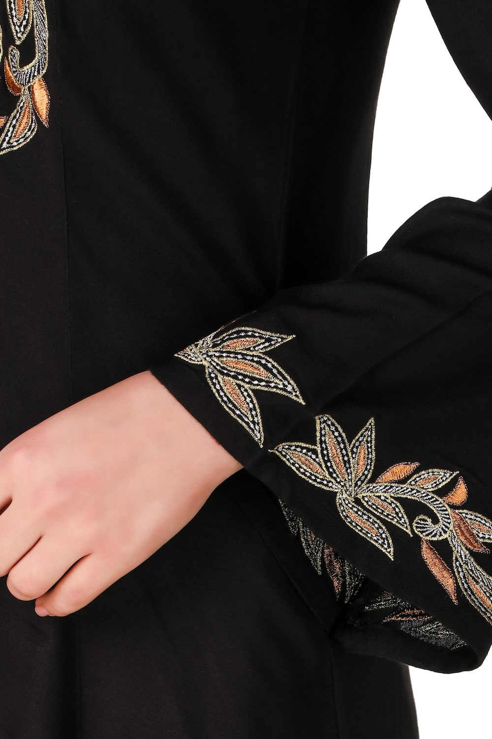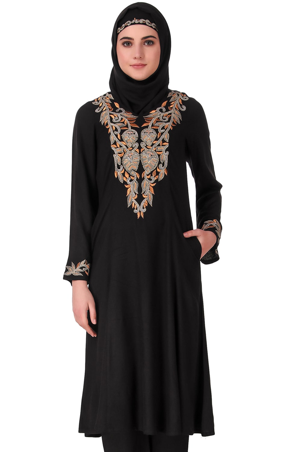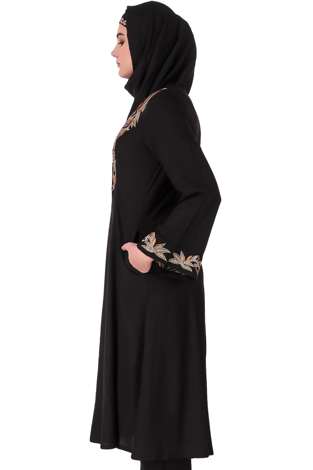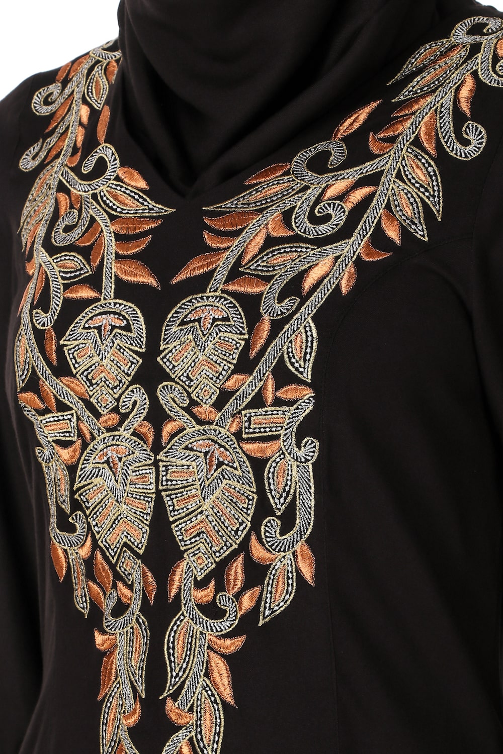 This sophisticated dress is detailed with intricate embroidery on the bodice and sleeve, the princess seam pattern is paired beautifully with the A-line silhouette, adding greatest walking comfort and modesty.