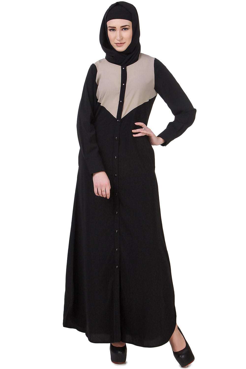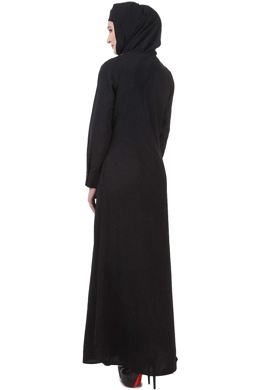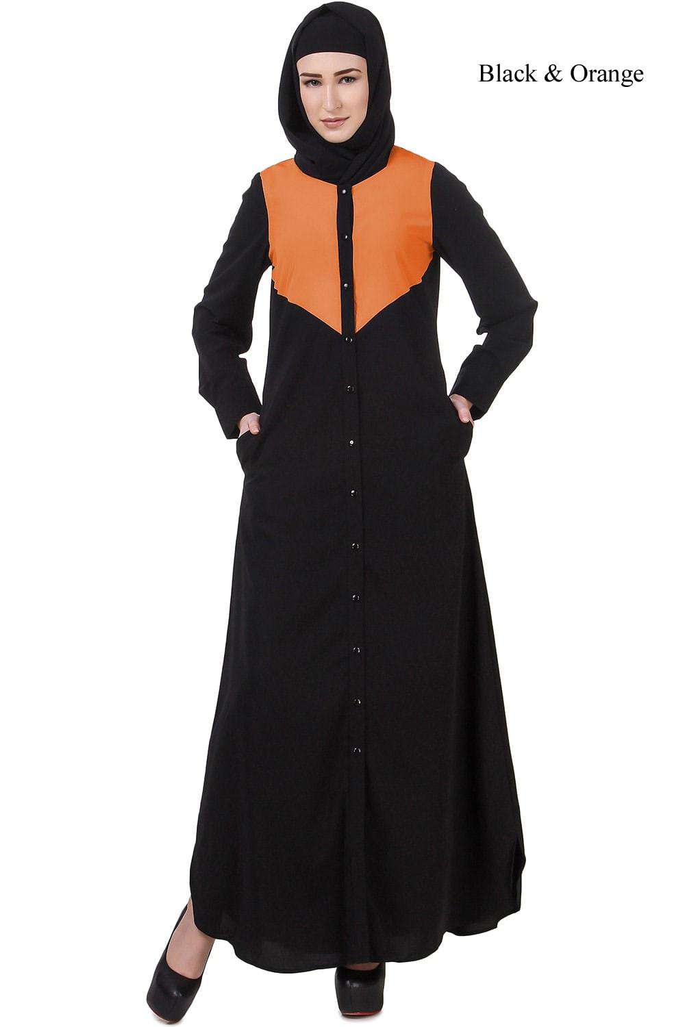 Item Details: Stay stylish and up to date in this unique straight cut, front open Abaya. The attire gives a perfect slim look with its contrast front patch.
