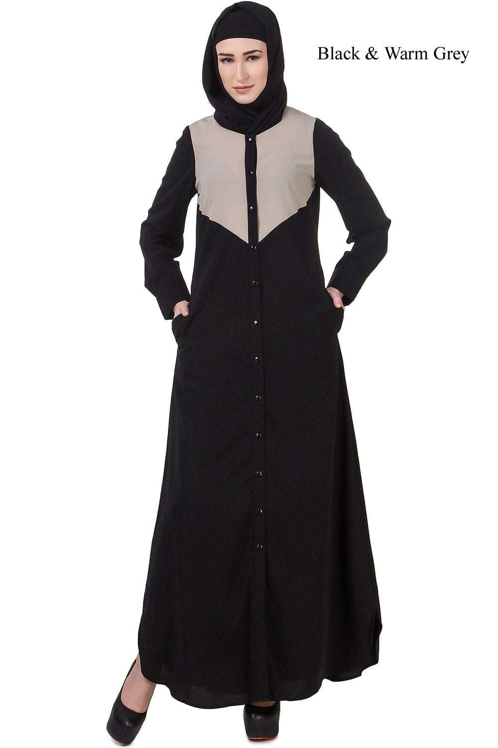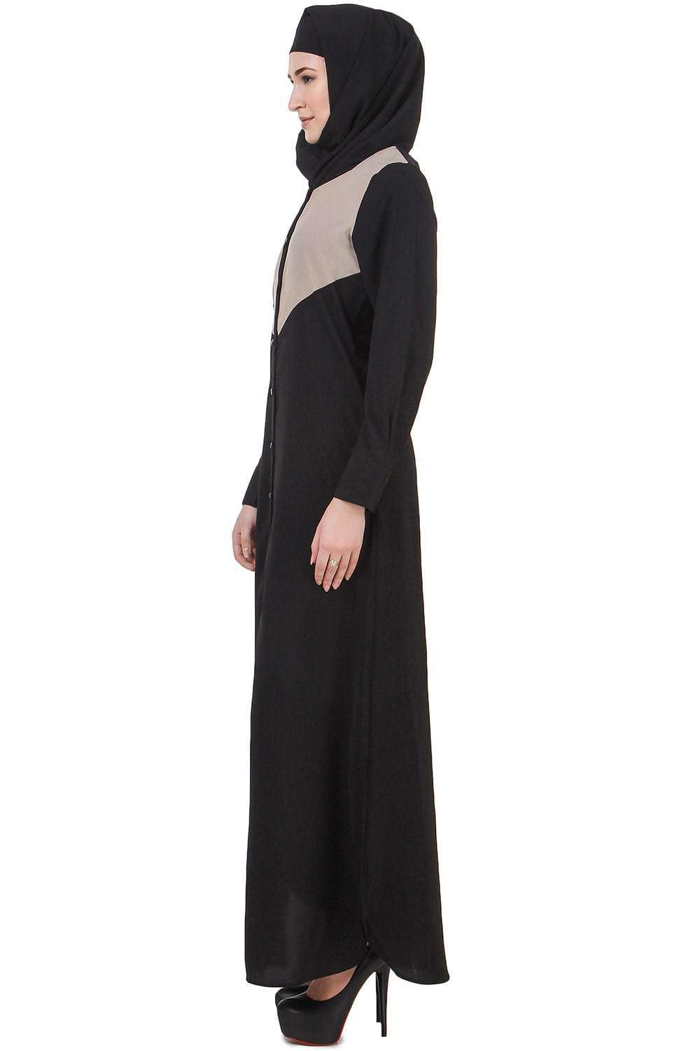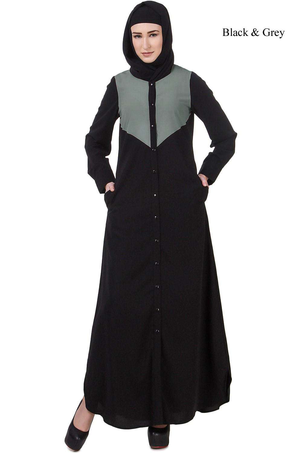 Item Details: Stay stylish and up to date in this unique straight cut, front open Abaya. The attire gives a perfect slim look with its contrast front patch.
