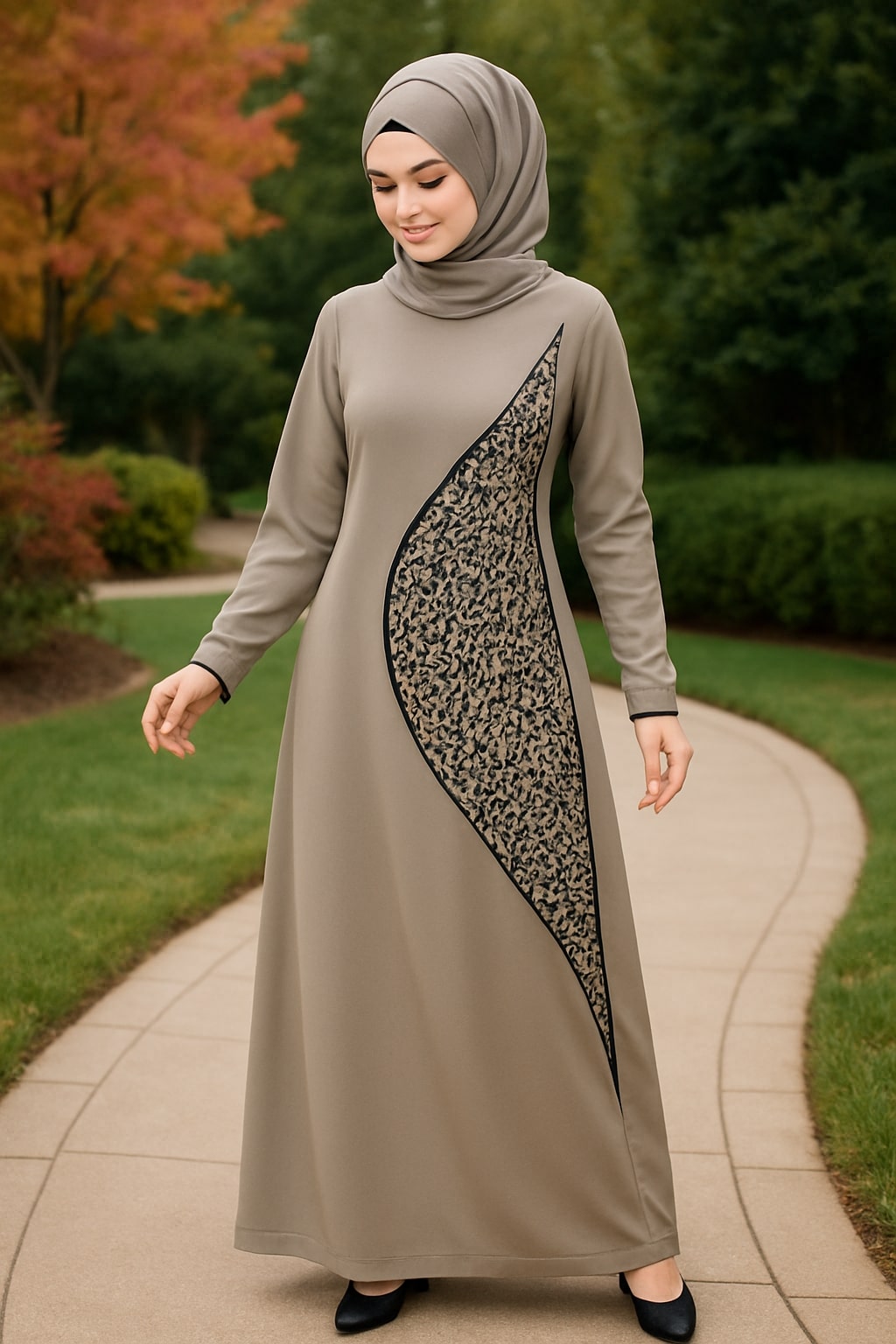 An attractive Islamic abaya with beautiful embroidery in front, suitable attire for casual & occasion wear use
