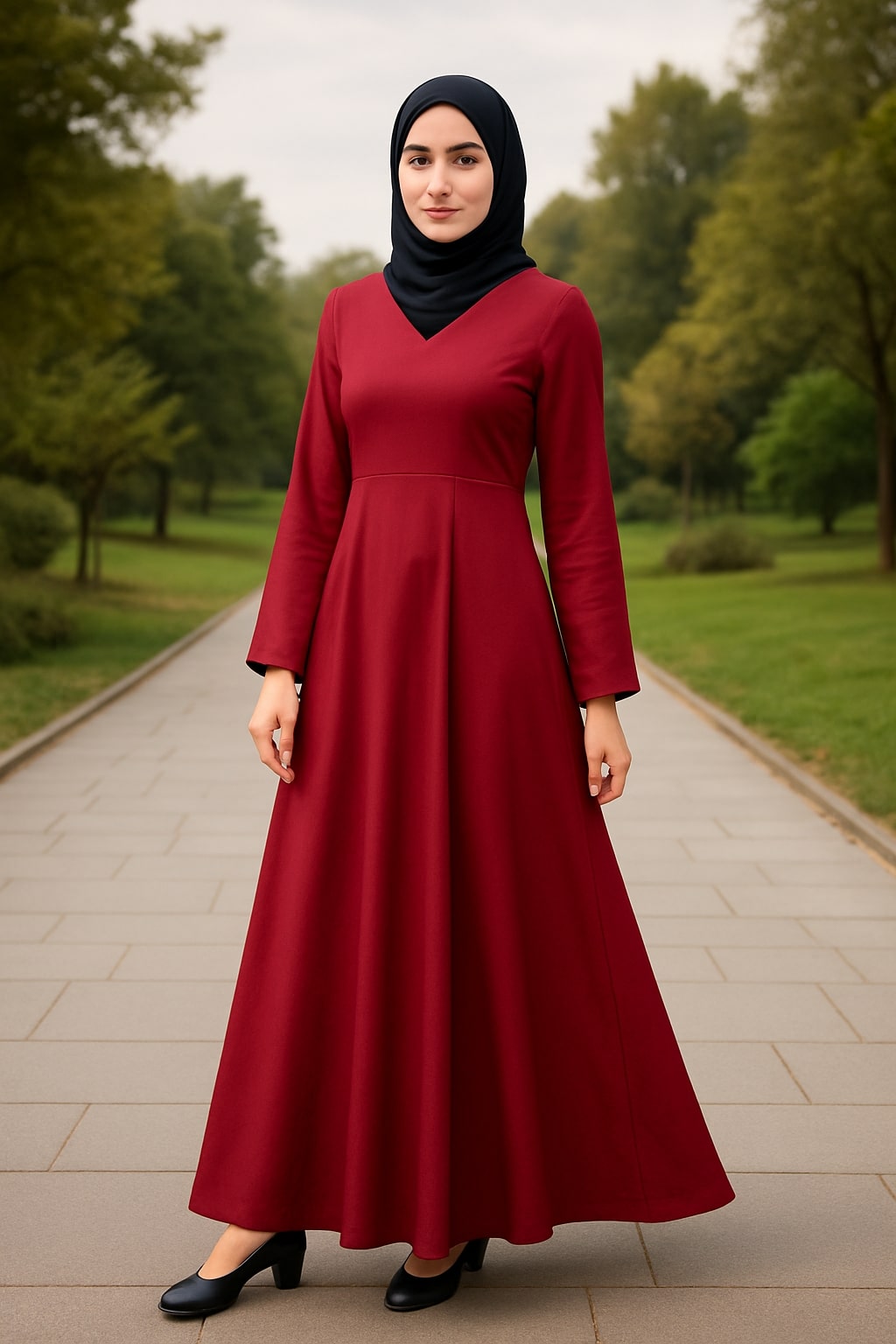 - Umbrella cut flared bottom.